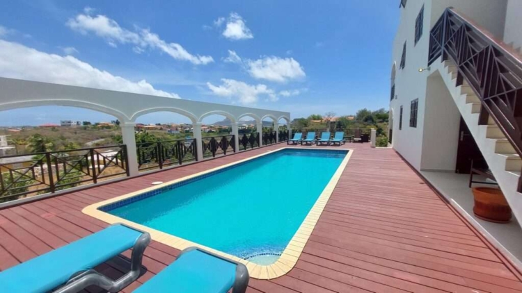 Op een fantastische hoge ligging met een prachtig uitzicht staat in Jan Thiel aan de Caracasbaaiweg een appartementencomplex met 8 appartementen en 1 penthouse, C-Bay Deluxe Resort.