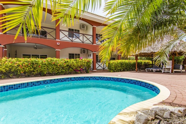 Modern gemeubileerd appartement met 2 slaapkamers op het resort Seru Hulanda met gemeenschappelijk zwembad in de rustige wijk Rust en Vrede die grenst aan de wijken Santa Rosa en Koraal Partier. Het bekende Mambo Beach, Jan Thiel Beach...