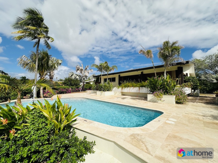 De villa is ruim van opzet. De chique hardhouten voordeur geeft toegang tot het eerste gedeelte van de woonkamer. De enorme L vormige woonkamer heeft aan de voorzijde glazen schuifdeuren die toegang geven tot een ruime overdekte porch. Aan deze zijde is een fantastisch uitzicht op de tuin met het zwembad en het eiland. De hoge ligging van deze woning geeft naast een geweldig uitzicht ook een heerlijke frisse wind met zich mee. De woonkamer beschikt over hoge plafonds wat een extra ruimtelijk gevoel met zich meebrengt.