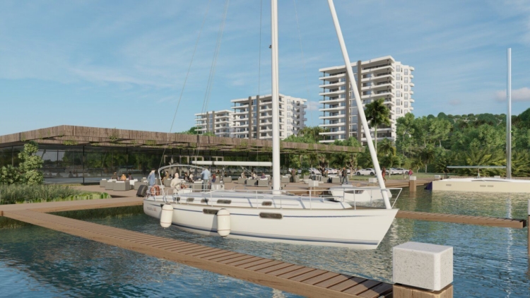 De bouw van de jachthaven begon in augustus 2023 en de eerste fase van de bouw nadert nu zijn voltooiing, waarbij de golfbreker nu bijna voltooid is en de ingang van de jachthaven zich nu op de beoogde breedte van 20 meter (65 ') en diepte van 4,5 meter (14') bevindt. ). Onlangs is het contract voor de baggerwerkzaamheden in de lagune gegund. De verwachting is dat de werkzaamheden in het derde kwartaal van 2024 zullen aanvangen. Binnenkort zal een order voor de roterende brug en voor de pierelementen voor de jachthaven worden geplaatst.