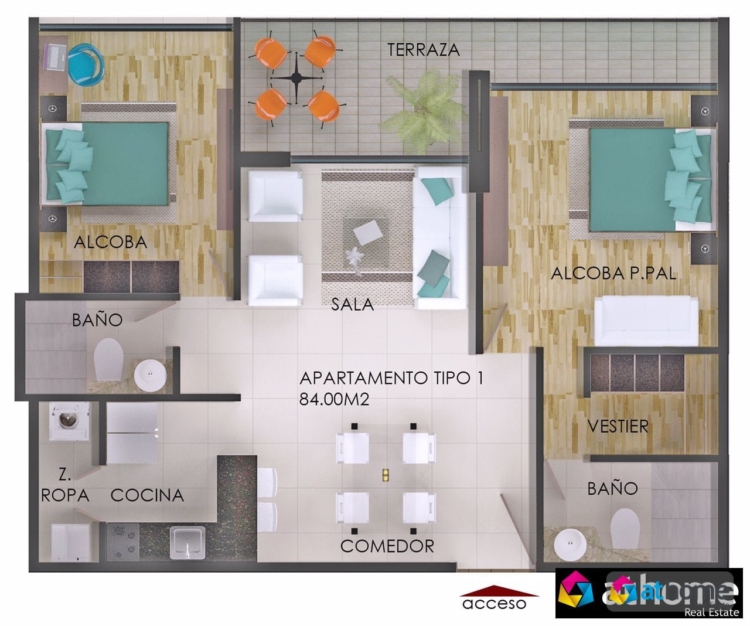Verkoopprijzen voor 2-slaapkamers, 2 badkamers appartementen (109m2), vanaf ANG 756.500,= / ongeveer USD 425.000,- k.k.