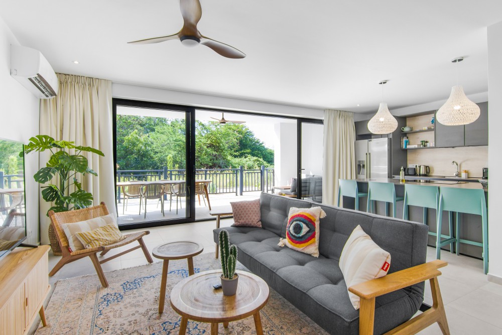 The Breeze is a brand-new, luxury ground floor apartment at the exclusive Blue Bay Resort. Designed by architect Henk Bolivar (Bo! Arkitektura), “The Breeze” offers high-quality living with lush gardens and two impressive infinity pools.This apartment features a spacious living room with a modern kitchen, island and quality built-in appliances, two bedrooms each with en-suite bathrooms, energy-efficient AC units, internal laundry/storage space and a large terrace. It stands out for its full privacy — no direct sightlines from neighboring units.The terrace seamlessly connects indoor and outdoor living, offering views of the tropical garden and easy access to the pool. Private parking included; guest parking available on-site.Ideal as a personal residence or second home, The Breeze also allows short-term rentals, providing strong investment potential. The central location at Blue Bay Resort ensures direct access to the beach, restaurants, golf course, and tennis courts.For more info or a viewing, contact Derek Plagman