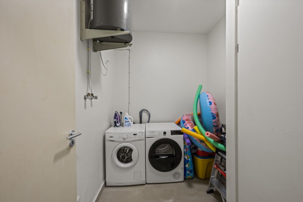 The two bedrooms are accessible from the central hallway. The master bedroom has beautiful French doors opening to the balcony and offers stunning views of the Caribbean Sea. It features an en-suite bathroom with double sinks, a shower, toilet, a large bathtub, and a walk-in shower. There is also ample built-in closet space, allowing for the creation of a private owner;s closet. The second bedroom includes a built-in wardrobe and has direct access to a bathroom with a shower, sink, and toilet.Ocean 11 is sold fully furnished, including bedding, TVs, dinnerware, cutlery, glassware, and more. This makes it immediately ready for (short-stay) rental, allowing rental operations to continue seamlessly.