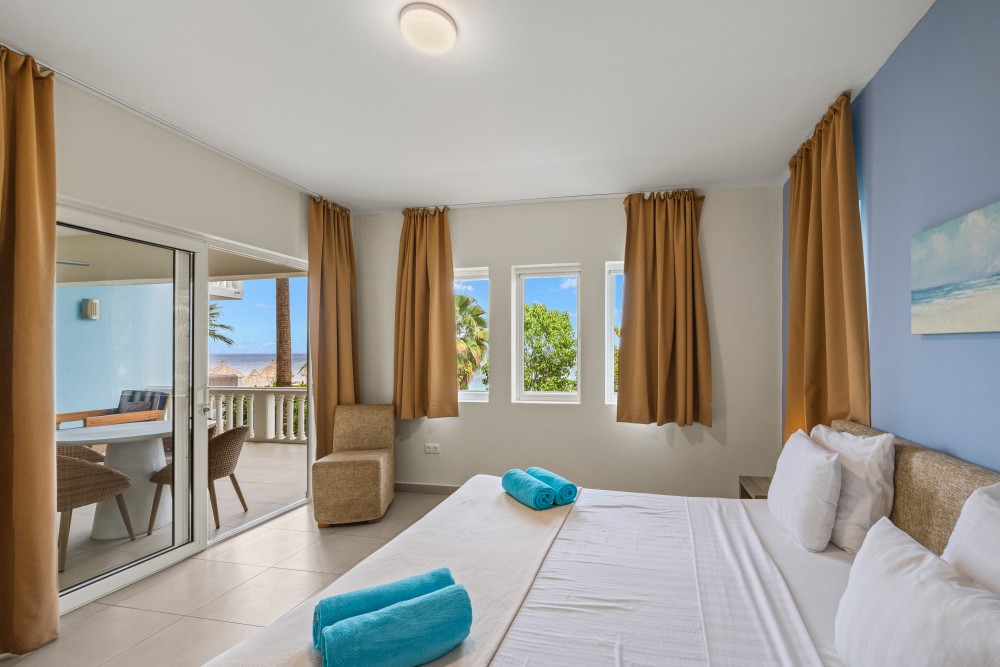 Two bedrooms, including a master with balcony and sea view