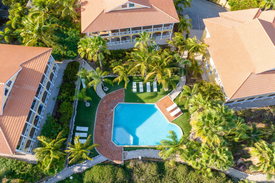 Gelegen in de rustige wijk Jan Thiel op 2 minuten rij afstand met de auto naar Jan Thiel Beach, treft u dit geweldige appartement gelegen in een prachtig, tropisch resort. Het appartement is onderdeel van een gebouw met 4 wooneenheden. Op het kleinschalige resort van 4 appartementengebouwen en 4 bungalows heeft u de beschikking over een rustig gelegen zwembad in een tropische omgeving. De weelderige, tropische tuin en het ruim bemeten zwembad worden op dagelijkse basis onderhouden. Het resort nodigt uit tot ultieme ontspanning. Op het resort zijn twee toegewezen parkeerplaatsen beschikbaar per appartement,