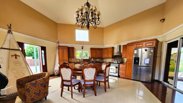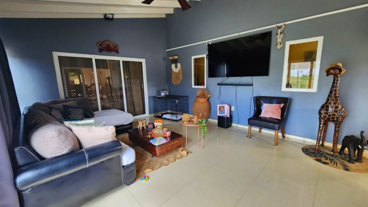 Dit huis biedt een ruime en elegante woonkamer die comfort en stijl combineert. Het...