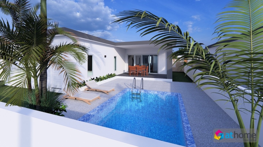 De ruime bungalow verwelkomt je in het gezellige woongedeelte, waar de woonkamer omringd is door openslaande deuren en ramen. Deze openslaande elementen geven je het gevoel één te zijn met buiten en de overdekte veranda aan de achterkant. De veranda is ook de ideale plek om een verkoelend briesje te voelen en om to rust te komen bij het privézwembad terwijl je geniet van het