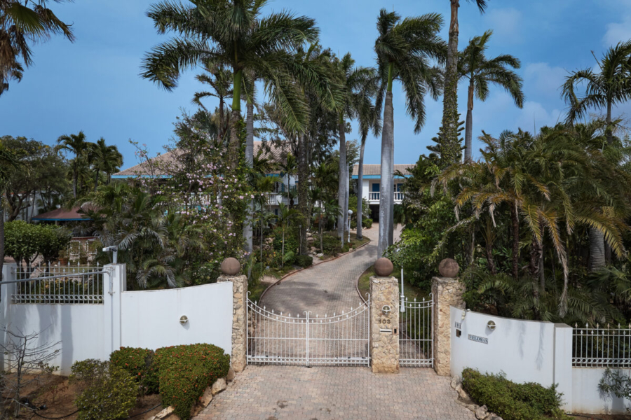 Het mag duidelijk zijn: Senior liet deze grand-villa zo bouwen dat Aruba op zijn allermooist uitkomt. Maar dat is lang niet alles. De uitgekiende ligging omarmt ook het passaatbriesje, dat verkoelend om de hoek komt waaien én zorgt ervoor dat de terrassen de fijnste mix tussen zon en schaduw bieden. Hier is alles uitgebalanceerd en goed doordacht, al voelt het alsof het gewoon zo moet zijn. Het was ook senior die de parkachtige tropische tuin aanlegde, of liever gezegd, liet aanleggen. Onder architectuur, door een hovenier die vanuit Nederland op Aruba is neergestreken. Vandaag de dag durft zijn zoon de uitspraak wel aan dat deze tuin misschien wel de mooiste is van alle privévilla’s die Aruba rijk is. In deze prachtig aangelegde tuin is voor het zwembad ook nog een grote, luxe, buitenbar gerealiseerd en een vijver met waterval om daar zeer gezellige avonden door te brengen.