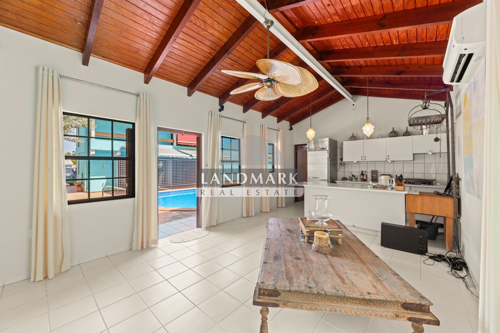 Deze woning in Rooi Catootje combineert ruimte, comfort en een praktische indeling. Met een groot zwembad centraal tussen het hoofdhuis en een volledig uitgerust gastenverblijf, biedt Kaya Tuturutu 9 alles voor wie royaal en toch intiem wil wonen. De woning is omgeven door beplante borders en volwassen bomen, waardoor er volop privacy is en een groene uitstraling behouden blijft.