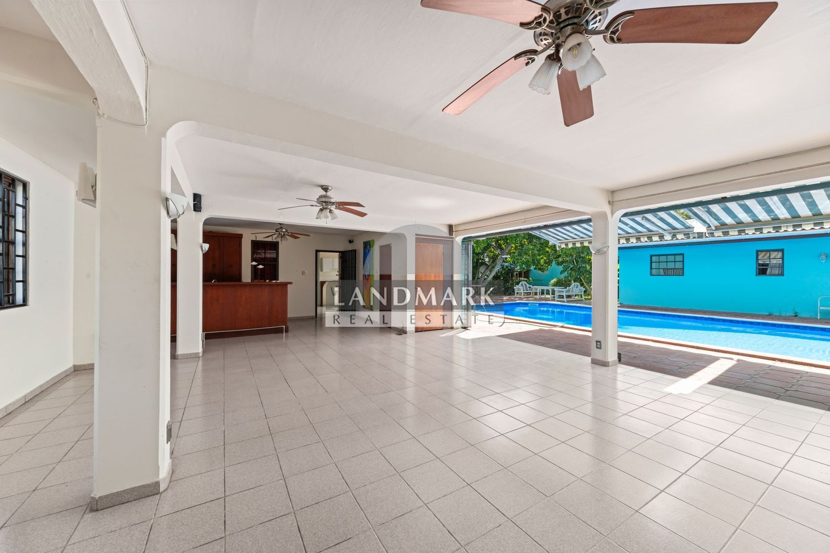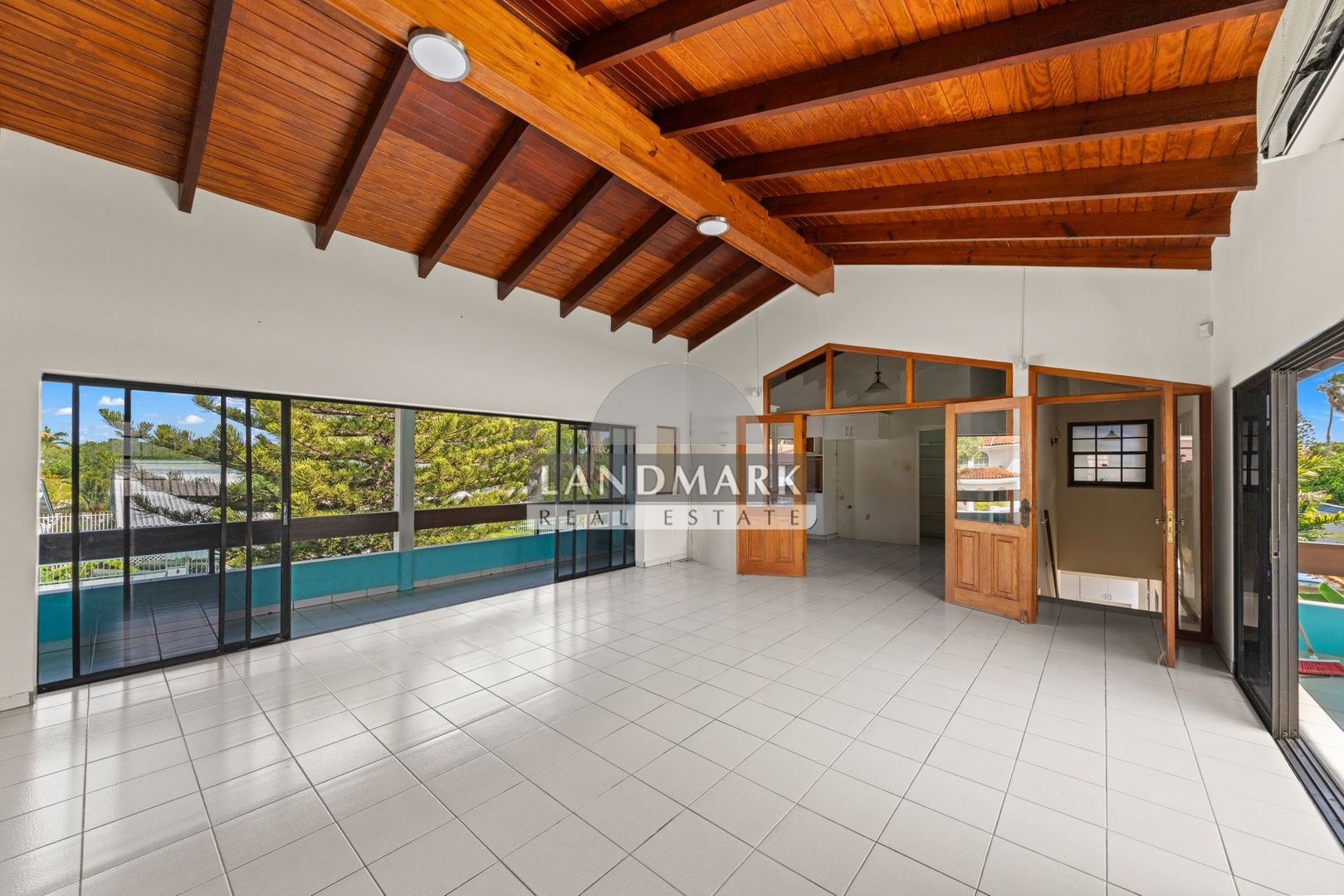 Op de begane grond kom je direct binnen in een ruime woonkamer met plafondventilatoren. Grote openingen verbinden deze woonkamer met de tuin en het zwembad, waardoor er een vloeiende overgang ontstaat tussen binnen en buiten. Op de bovenverdieping bevindt zich een tweede woonkamer met airconditioning en veel lichtinval dankzij de raampartijen en het balkon dat rondom loopt.