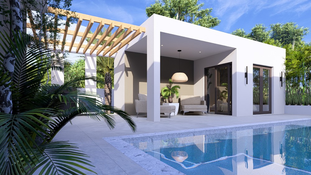 This modern, two-story villa epitomizes luxury and spaciousness. It is situated on a generous lot and centered around a magnificent pool designed for relaxation. The surrounding sun deck and barbecue area create an ideal space for entertaining friends and family.