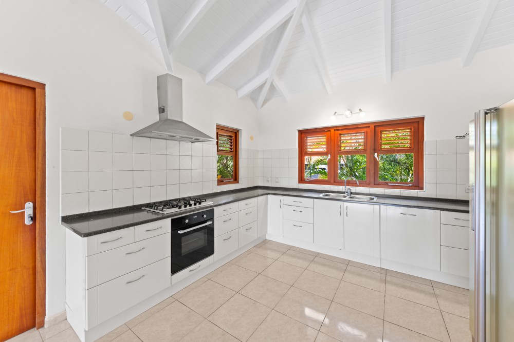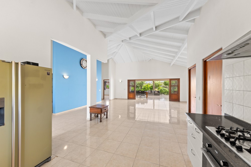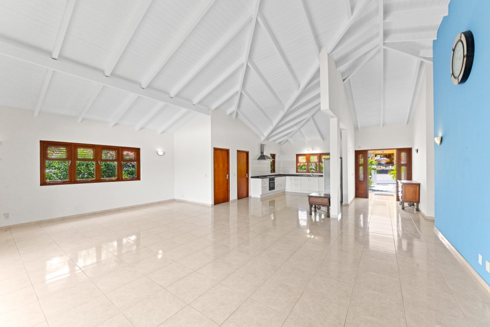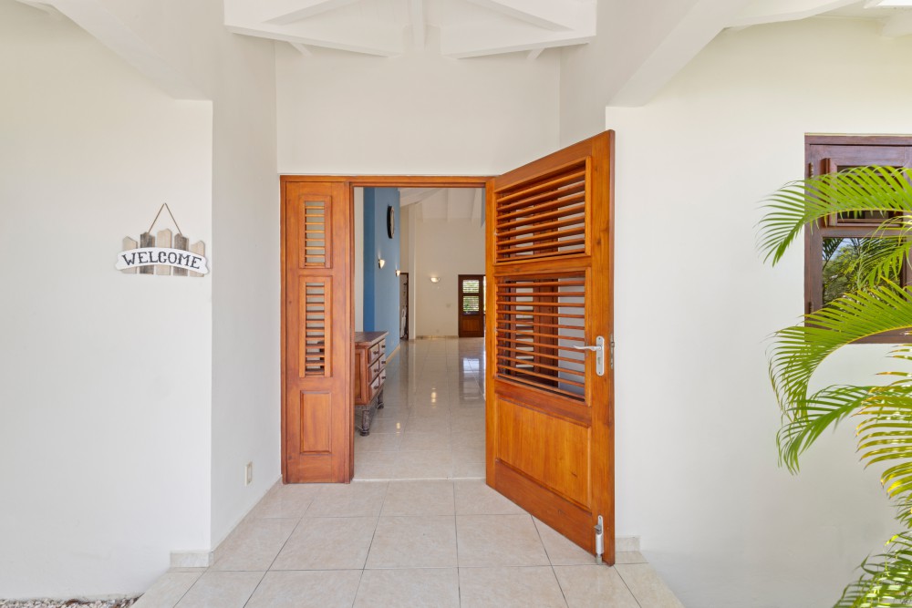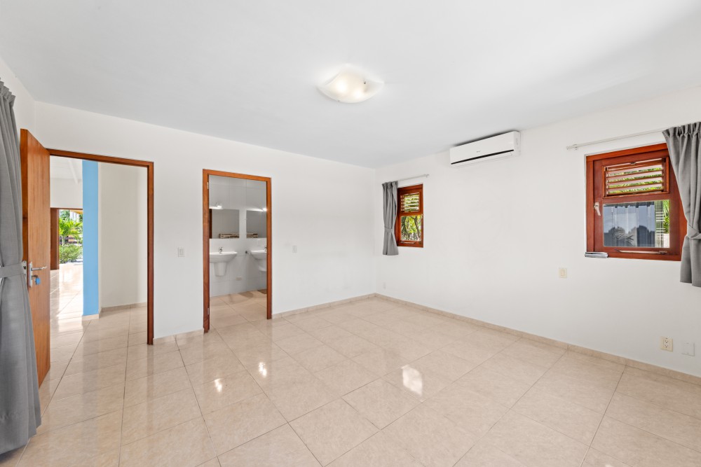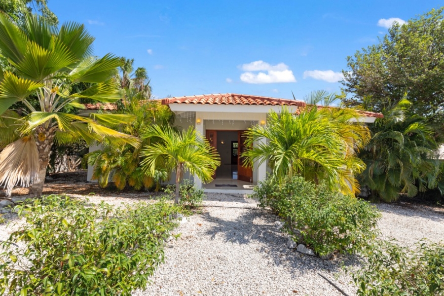 This villa is exceptionally well-built and located in the L-section directly on the golf course of the Blue Bay Golf and Beach Resort. At the front of the property, there is ample parking space for two to three cars on the private grounds. From the main entrance, you immediately access the spacious living and dining area. The high ceilings in this space enhance the sense of openness.The open-plan area also features a modern kitchen, equipped with all necessary high-quality built-in appliances. The pantry is located directly next to the kitchen and offers ample storage space, as well as connections for a washing machine and dryer.The three bedrooms are divided into two similar (guest) bedrooms, which are also very suitable for use as offices. These two bedrooms share a neat bathroom with a toilet, shower, and vanity unit.The master bedroom includes a generously sized private bathroom, featuring a wall-mounted toilet, double sinks, and a walk-in shower. This bedroom has French doors providing direct access to the porch.All bedrooms are air-conditioned.The sliding doors in the living room can be fully opened, providing direct access to the spacious porch. This porch serves as the villa’s second living room, offering more than enough space for a large dining table and lounge set. Ceiling fans provide a refreshing breeze.The garden is beautifully landscaped with native and various plant species, keeping maintenance and water usage minimal. A small garden gate provides direct access to the golf course. There is more than enough space in the garden to add a pool, a charming palapa, or a small guesthouse.For inquiries or to schedule a viewing, please contact: Derek Plagman, +599 9 670 33 81 or [email protected]