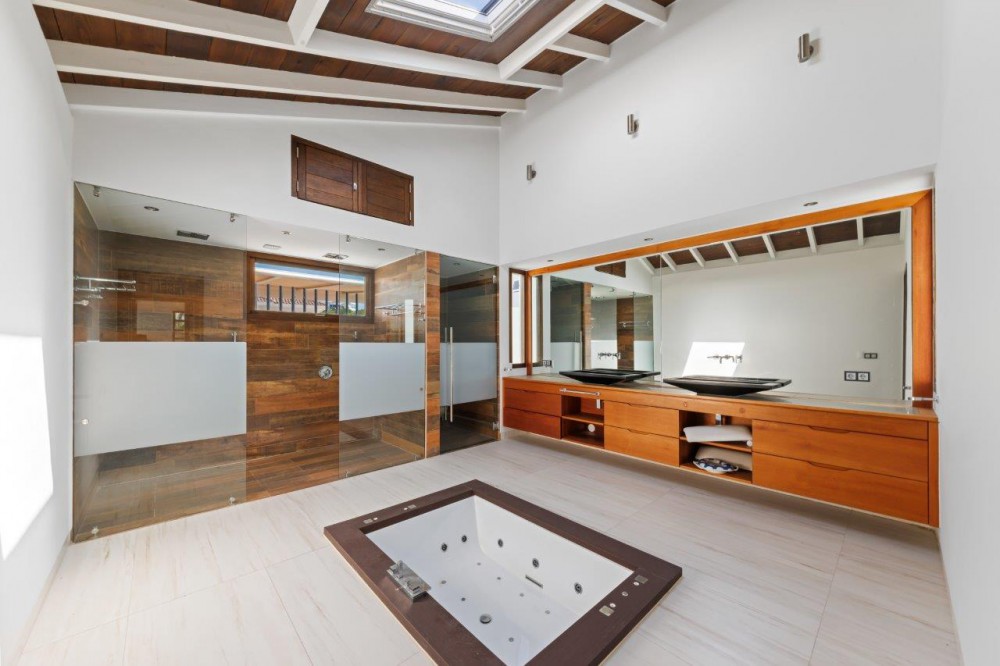 Two floors with 3 spacious bedrooms and 3 luxurious bathrooms, including a jacuzzi and walk-in showers