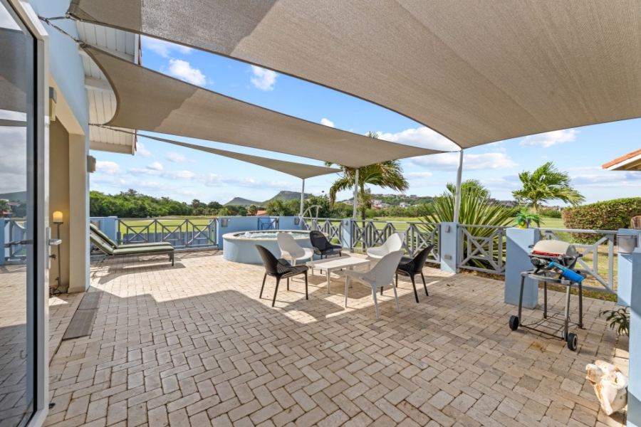 This exclusive, fully furnished apartment is situated in a quiet and green area of the prestigious Blue Bay Golf & Beach Resort. From the spacious terrace with private jacuzzi, you enjoy stunning views of the meticulously maintained fairways of the 18-hole golf course right at your doorstep.The property offers a smart layout, featuring a spacious open-plan living area that seamlessly connects to the modern kitchen. The kitchen is fully equipped with high-quality built-in appliances, a kitchen island, ample storage space, and premium finishes. Large windows and sliding doors fill the living space with natural light and perfectly integrate indoor and outdoor living.The apartment has two generously sized bedrooms, each with its own luxurious en-suite bathroom, fitted with modern fixtures, a walk-in shower, and elegant finishes. An additional guest toilet provides added convenience for visitors.A private parking space is included, and the building is surrounded by a beautifully landscaped tropical garden. Within the resort, residents enjoy 24/7 security and excellent amenities such as a private beach, tennis courts, restaurants, a fitness center, and the renowned Blue Bay Golf Club.Holiday rental is permitted, making this bungalow ideal for personal use and offering excellent rental income potential.Thanks to its prime location and quality, this apartment is ideal as a second home, comfortable permanent residence, or lucrative investment property. Short-term vacation rentals are allowed, offering excellent rental income potential.For more information or to schedule a private viewing, contact Nick Vervoord.