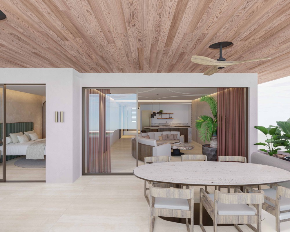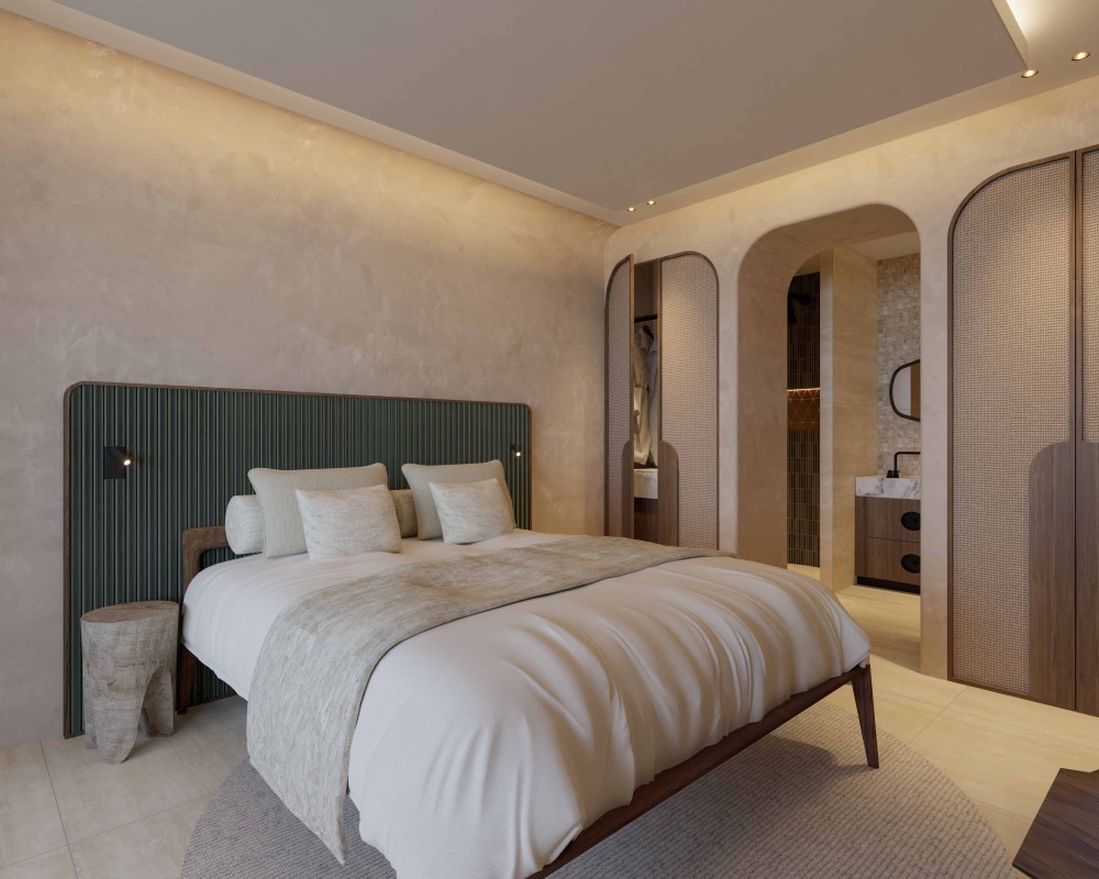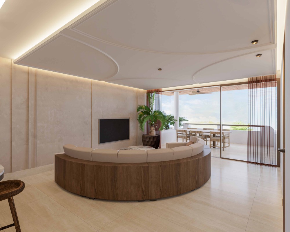 Discover ultimate comfort and refined style at The Lotus, an exclusive 178 m² apartment located in the heart of Blue Bay Golf & Beach Resort on Curaçao. Surrounded by lush nature and panoramic views of the golf course and Jack Evertz Mountain, this apartment offers an oasis of tranquility and modern luxury.This spacious 3-bedroom, 3-bathroom apartment is fully air-conditioned and designed with attention to detail and functionality. The timeless, modern architecture creates a harmonious connection between indoor and outdoor living. Large sliding doors open up to a spacious, shaded terrace with a private plunge pool and outdoor shower – perfect for relaxation in the Caribbean climate.The open-plan living area connects the kitchen, dining room, and living room into a bright, inviting living space. Each apartment has its own storage room and laundry area for maximum convenience. The master bedroom with an en-suite bathroom and views of tropical greenery offers the feeling of a luxury resort, every day. Located in a secure, gated community, The Lotus provides serene privacy alongside all the benefits of Blue Bay: an 18-hole golf course, a private white sand beach, a beach club, restaurants, water sports opportunities, and 24/7 security.