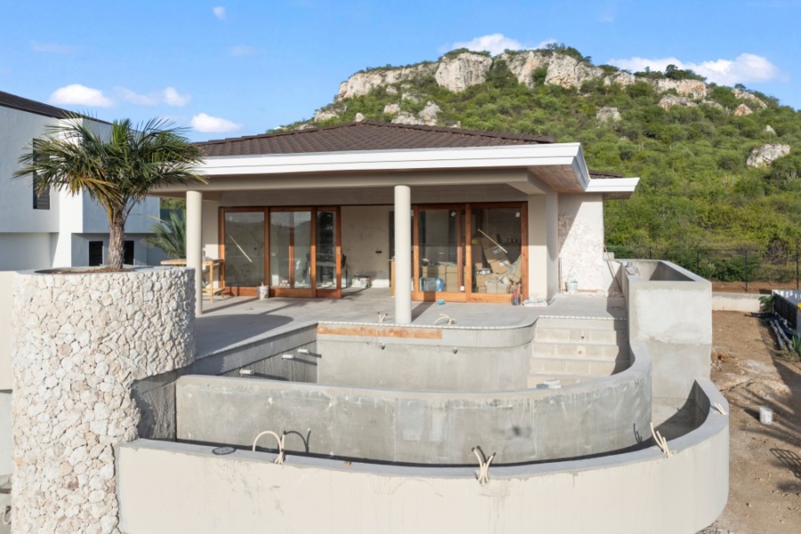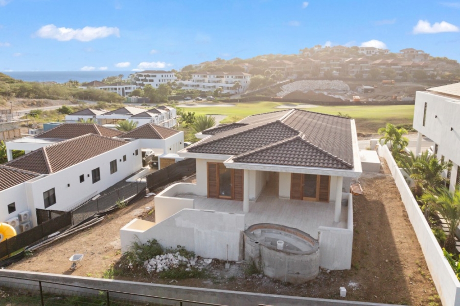 This newly built villa on the newly developed W-section of the Blue Bay Golf & Beach Resort Curacao is created by renowned designer Osiris Hertman, in collaboration with architect Henk Bolivar. Hertman as a well known designer creates houses all over the world, known in Curacao for the Shore, the Ridge, Brass Boer and The Lotus.Due to the elevated lots, there is an unobstructed view from both the large terrace and the smaller terrace at the rear of the house. The villa features high-quality finishes and is built with natural, sustainable materials. Enjoy a dinner with friends or family while watching the most beautiful sunset on the ocean side of the villa. If you want to relax in complete privacy and enjoy full freedom, there is a terrace at the back of the villa with a jacuzzi, offering a view of the resort;s most beautiful green mountain. Enjoy the sounds of the thousands of different birds that call this place home. This stunning villa has a number of impressive features that make it a unique property. It offers four spacious bedrooms and four and a half bathrooms, with the master bedroom featuring an exclusive Cone Series JEE-O world design by Osiris Hertman. The interior is of the highest quality, with a natural stone kitchen and top-of-the-line built-in appliances, including a Fhiaba refrigerator and freezer drawer. The bathroom fixtures are from the prestigious JEE-O world brand, ensuring perfect finishing. The villa also boasts a swimming pool, jacuzzi whirlpool, and two covered terraces, ideal for outdoor entertainment. The property has a separate entrance leading to the guest accommodations and offers a beautifully landscaped garden. Additionally, the villa is equipped with solar panels, contributing to its sustainability. The design of this villa was created in collaboration between renowned designer Osiris Hertman and architect Henk Bolivar. They are both famous for their work worldwide, including projects such as The Shore, The Ridge, the Brass Boer restaurant, and the new villa park The Lotus. Investment opportunity or purchase of this villa at Blue Bay Curacao W-section 07. The villa at W-section gives you the opportunity to generate additional income through short stay vacation rentals. When you are not staying in the villa, the property can be rented out. The rental will be managed by an external party. If you are interested, contact Nick today for more information about this property!