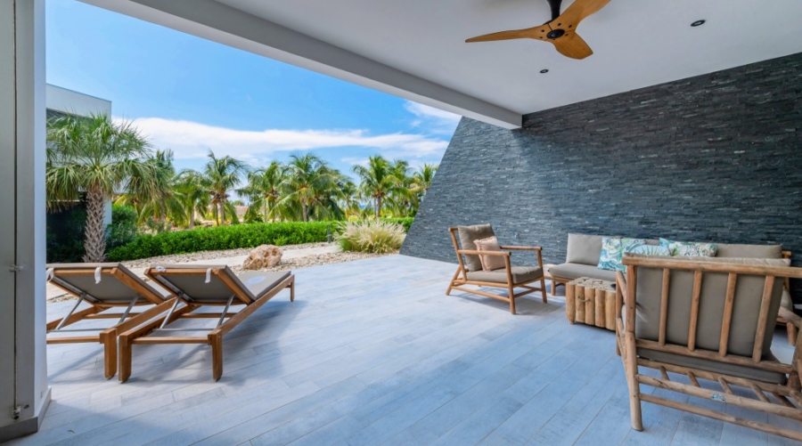 Welcome to The Reef, an exclusive apartment complex located in the heart of Blue Bay Golf & Beach Resort, Curacao. Designed in partnership with renewed architect Henry Bolivar of Bo Architecture and ILB Interior Architects, this complex focuses on the effortless connection between outdoor living and modern luxury. This two bedroom unit comes fully furnished with meticulously selected pieces to create a modern, fresh interior making it ideal for personal ownership or as a vacation rental.The main living area of the apartment consists of a large living room and a gorgeous open concept kitchen. Large sliding doors open directly onto a spacious porch with a spectacular view of the tropical gardens, the golf course and the Caribbean Sea. This apartment is perfectly positioned to maximize the Caribbean breeze. A central hallway leads to both the master and guest bedrooms as well as a laundry room with additional storage. The spacious master bedroom is elegantly designed and features large built-in wardrobes on both sides of the entrance to the ensuite bathroom. The ensuite is equipped with high-end European sanitary fixtures and has a beautiful modern double vanity.The guest bedroom, furnished with a double bed, has easy access to the second bathroom also equipped with top-quality European sanitary ware. The guest bathroom features a spacious walk-in rain shower with a thermostatic faucet and hand shower, a modern wall-mounted toilet, and a double vanity.Both bedrooms and the living room are fitted with energy-efficient inverter air conditioners, ensuring year round comfort.All windows in the apartment are fitted with shutters and mosquito screens allowing for optimal ventilation without worrying about insects.Next to the stairwell, leading to the parking lot, there is a second external storage room, perfect for keeping personal items or rental supplies.This unit is located on the main floor of the apartment complex giving it a much larger terrace (+7.5 m²) and direct access to the swimming pool. Additionally, it includes several exclusive features:- Miele combi oven and dishwasher- Liebherr built-in fridge & freezer- Liebherr built-in wine cooler- Miele combination washer & dryer- Extra drawers in kitchen and bedroom cupboards- Dorma Kaba door supports on entrance and bedroom doors- Matte black toilets- Mirrored vanity with lighting in the master bathroom- Fully tiled showers in both bathrooms Experience The Reef at Blue Bay, perfect for vacationers, expats, or winter visitors to Curaçao. Offering flexible rental options and excellent ROI, it’s the ideal investment for both short and long-term stays.The apartment is being sold with its current inventory, furniture and upholstery.For more information, view the virtual tour or contact the listing agent to arrange a personal viewing!