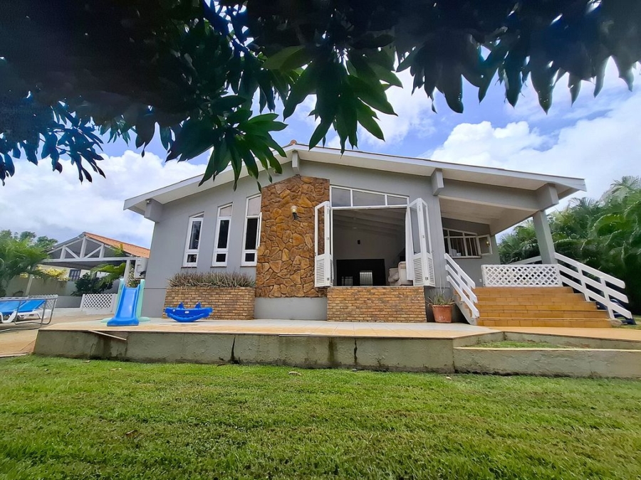 De tuin is groen en volwassen, met prachtige bomen zoals palm de misa, mango en mispel. Dit zorgt voor veel privacy en schaduw, en er is volop ruimte om een zwembad te plaatsen.
