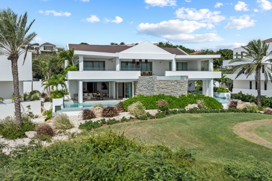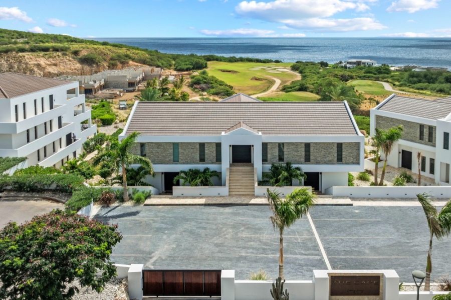 The Cape is a limited development of exclusive penthouse apartments, each with beautiful unobstructed views. The Cape consists of two buildings with a total of 5 apartments and 3 penthouses. The project is a collaboration between architect Henk Bolivar of Bo! Arkitektura and ILB interior architects. It is characterized by a combination of modern and traditional Caribbean design and the use of high quality materials.The design of the apartment provides a seamless transition between the indoor and outdoor spaces. The sliding doors completely disappear into the side walls giving your apartment a breathtaking panoramic view of the golf course and Caribbean Sea. This design feature brings the living room and outdoor spaces together creating a spectacular open space that maximizes the sea breeze and the connection to nature.The large central living area, includes an open-concept kitchen complete with cooking island, high-end European appliances and a seamless stone countertop.The master and guest bedrooms are fully tiled and come with their own ensuite bathrooms. Each features a rain shower, natural stone countertops, and electric bidet toilets. The master bedroom features a fully customized walk-in closet while the guest bedroom has a custom built-in wardrobe. The private outdoor space boasts a covered porch with ample space for a dining table and lounge set. The infinity pool is a nice length and depth to accommodate a solo dip or entertain a group of friends while enjoying the view. The central hallway has a guest toilet and an internal storage room equipped with a washer and dryer. This apartment has two dedicated parking spaces and an external storage room to keep equipment, tools or seasonal items in a secure space.This apartment showcases high-end finishes such as bespoke wardrobes by ILB, luxury sanitary ware by Duravit, mat gold-look bathroom fixtures, energy-efficient Daikin inverter air conditioning, electrical switchgear from Niko, powder-coated aluminum sliding doors and window frames, and large-format ceramic tiles (120×120 cm) throughout the living areas and porch.Experience the ultimate flexibility with this apartment, perfect for permanent living or lucrative short-term and long-term rentals.If you are interested in viewing this property please contact the listing agent, Derek Plagman, who would be more than happy to arrange a personal tour and answer any of your questions about The Cape 7. Hs:2899