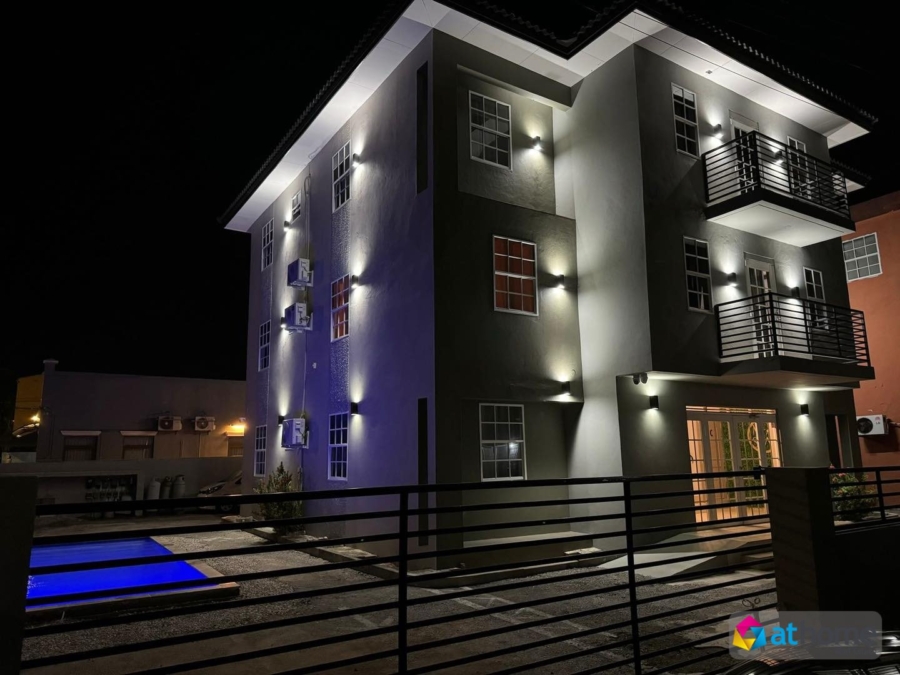 Er is een gezamenlijke buitenruimte met een heerlijk zwembad.