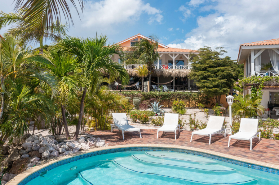 Direct aan het Spaanse Water gelegen op een kleinschalig en zeer populair resort met subtropische tuinen, een prachtig aangelegd zwembad, mooie schaduwrijke terrassen en op slechts een paar honderd meter van leuke restaurants, strand en watersportactiviteiten. Het strand van de Caracasbaai en Jan Thiel zijn eenvoudig te bewandelen.